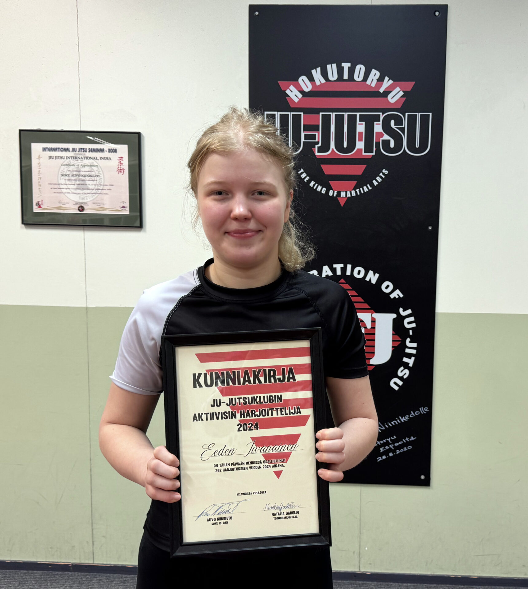 Kunniakirjan saivat lisäksi junnu BJJ:stä Milja Salla ja Hokutoryu nuorista Lilja Oikarinen. Sekä Milja, että Lilja ovat vuoden 2024 aikana on harjoitelleet tunnollisesti ja osoittaneet hyvää kamppailuasennetta.